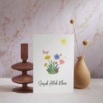 The greeting card is printed on cream cardstock and it's blank on the inside for you to write your special message.